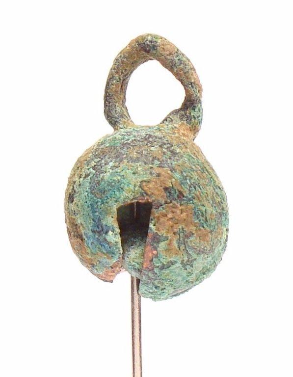The suspension ring of this design shows no signs of the connection with the smelting channel, but there is a metal clapper in the interior.