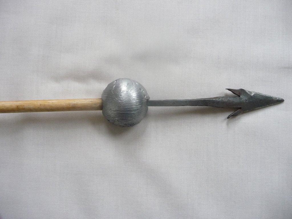 For a long period the method of casting the lead onto the wooden shaft was the topic of much discussion. The difficulty was that it was assumed that when liquid lead was poured onto the wooden shaft it would burn the shaft through, thus making the weapon useless. The current author has shown that the casting of lead onto a wooden shaft is a simple and straightforward operation, well within the skill set of any metalworker or armorer (Sim 1995).