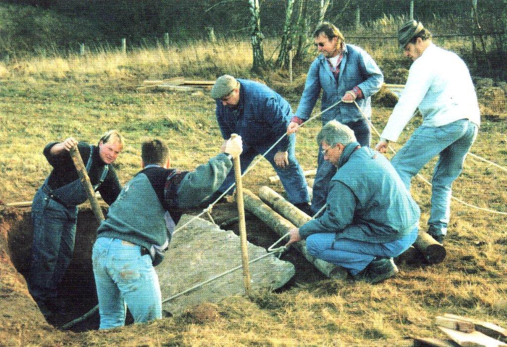 No, at least not at the beginning. It was coincidence that our first trials happened exactly during this period. The confusions, chances and changes of the year 1990 however made a lot of things, in practice, easier. It, for example, became possible to get in touch with colleagues in the now accessible neighbouring old states of Germany, especially in the Hannover Wendland, in Hitzacker and other regions of Lower Saxony. It is there that I met Mamoun Fansa from Oldenburg, and, as a result of this meeting, the travelling exhibition Experimental Archaeology in Germany made its first stop in the Salzwedel Mönchskirche. This meeting was decisive for the period that would follow.