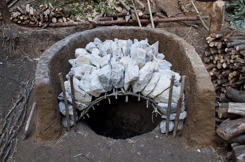 The one-chamber burning has much higher demands of the quality of fuel and also on the preparation of the material. The lime-burners may have possibly collected the needed limestone from scree or gravel or used fine-grained carbonate sediments like for example lake chalk. The access of oxygen to lower parts of the load creates a problem, demanding a high quality of fuel. For this type of burning wide shallow holes or surface shafts are more suitable.