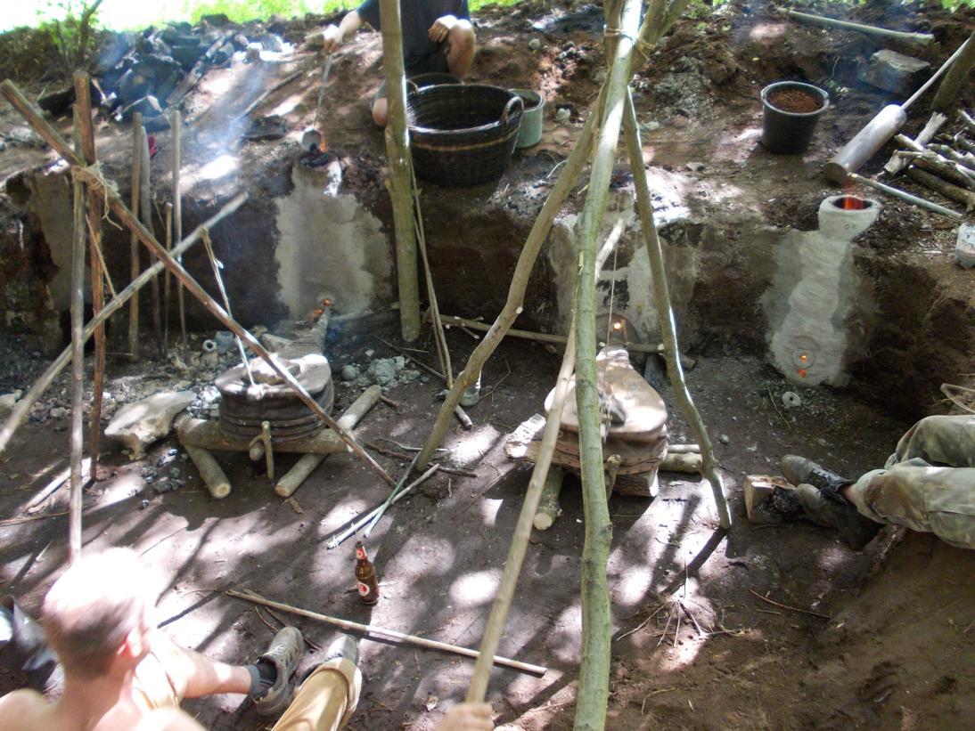 The Somogy Provincial Association for Nature Conservation (SPANC) has organized the fourth Iron Smelting Camp in Hungary between 28 July and 1 August. The accommodation was in the ‘Kund-castle’ and food was provided by SPANC. The camp was in the location of Somogyfajsz (40km south from Lake Balaton) where archaeologists have found archaeometallurgical evidence of medieval iron smelting and where a Bloomery Museum was also erected over an excavated workshop (See Figure above).
