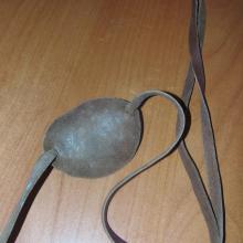 The sling is made of two leather strings and a pouch; its laces are 90 centimeters long and it has been used to throw many kind of bullets: irregular shaped stones, rounded stones, replicas of biconical and rounded clay bullets found in Southern Italy (Radmilli 1975, Figure 20), replicas of lead glans found in Ascoli Piceno (Naspi-Radelli 2011, 4-7) and replicas of the winged lead glans found in Cyprus (Naspi-Radelli 2011, also see www.slinging.org). These various bullets performed differently: e.g. velocity, drag and penetration. The maximum distance achieved was about 140 meters. Further distance tests made with another sling, a shorter braided one, barely reached 60 meters.