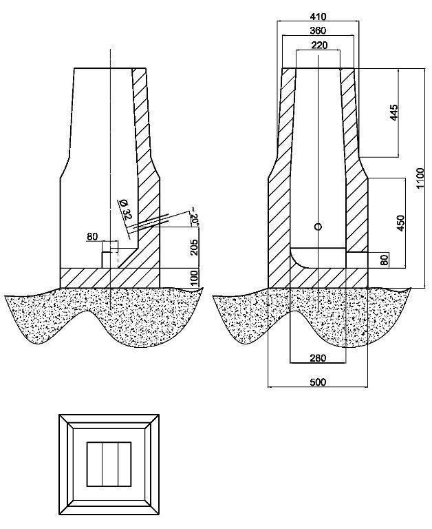 This experiment did not go as planned from the beginning. After just a little over two hours of operation the smelt was stopped by rain in the middle of the process. However, the results appeared to be quite interesting and worth for examining. The experiment was conducted on 12 September 2012, in a Japanese modelled furnace that imitated a modern furnace used by the Japanese swordsmiths (See Figure 9). The smelting process was preceded by two days of preparation. The construction of the furnace was the first step. It was built on a square plan using an ordinary bricks, but with thick (1-2 cm) internal clay lining. The size of the chamber was 26 x 26 cm in the lower part with a 10-11 cm thick wall and narrowed to 22 cm at the mouth of the shaft with walls 6-7 cm thick. The total height of construction was 110 cm, including a 10 cm base. The bottom of the furnace was shaped to a gutter form of v-shaped cross-section for better slag removal. The drain hole (80x80 mm) was situated on the sidewall of furnace. The air was supplied by an electric blower through a 35 mm tuyère embedded into the wall, in quantity between 120-200 l/min and adjusted to the current needs. From time to time the blast was being increased for a few minutes to about 300 l/min. The tuyère was located 20 cm above the furnace bottom with inclination angle of some 20 degrees.