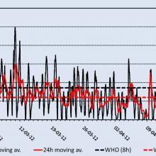 Both the 24 hour particle concentrations and the one hour nitrogen dioxide concentrations inside the houses were above the guidelines from the World Health Organisation of fine particles (PM2.5), which are 0,025 mg/m3 for 24 hours, and 105 ppb per hour for nitrogen dioxide (WHO 2006, 278-279; WHO 2010, 201-248). Daily levels of particles (PM2.5) were in the order of 0.80 – 3.4 mg/m3 with short-term peak concentrations of up to 22 mg/m3 (See Table 1).