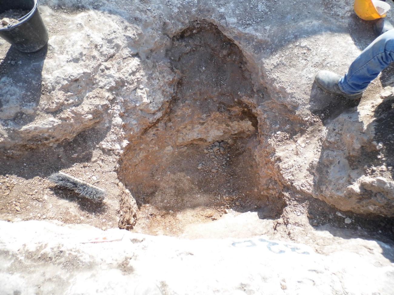 By the end of the day, the workers carved 35 cm deep into the chalk layer.