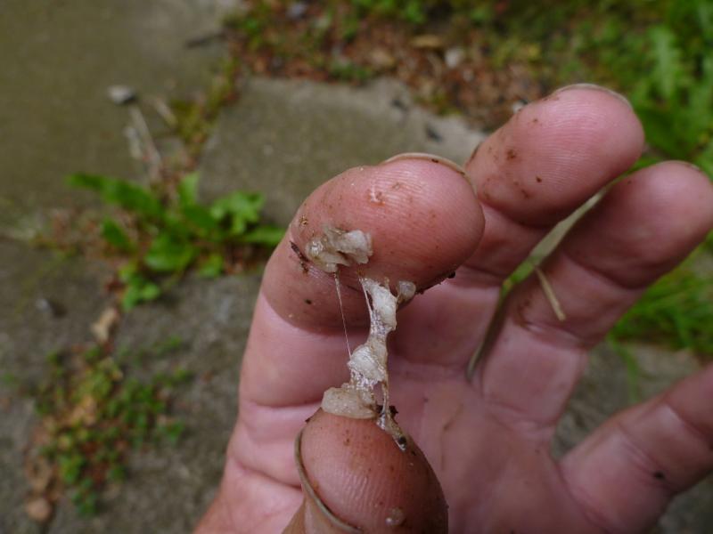 | Blue Bell glue | The Blue Bell (Hyacinthoides non scripta) is a beautiful little plant, growing in parts of Western Europe. It has a little underground bulb that, if squeezed, produces a sticky liquid. I was told by Ben McNut (Woodsmoke, UK pers. comm.) that this liquid was used in former times in England for fletching feathers to arrows. You apply it directly onto the feather shaft and stick it onto the arrow shaft. I still need to do experiments with this (See Figure 21, 22 and 23). |