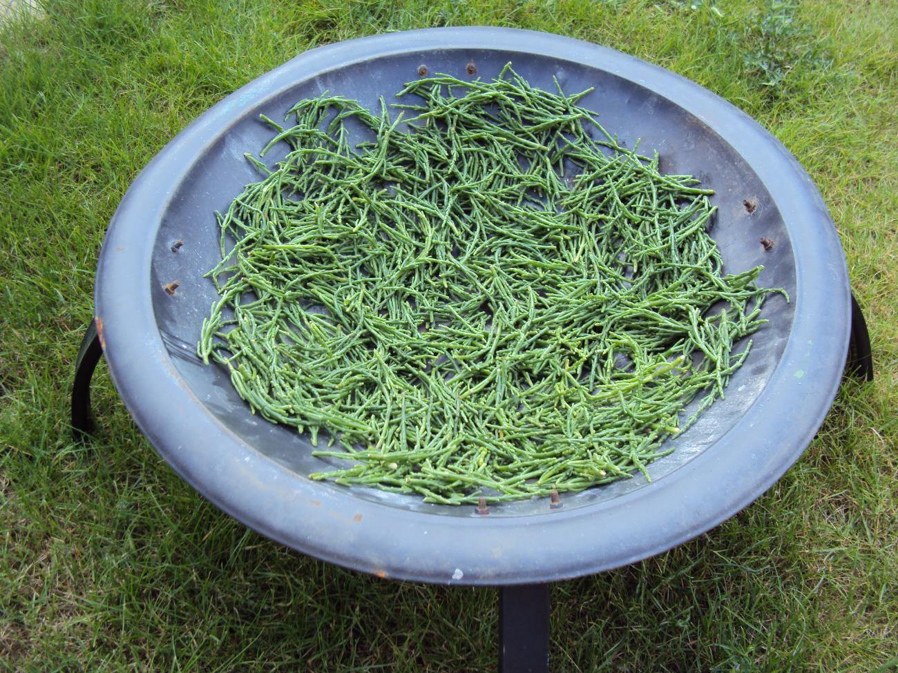 The experiment demonstrated that saltmarsh plants, in this case samphire or glasswort, enhanced the salinity of seawater when dried and burnt to ash and added to the liquid. Surprisingly, however, the ash-steeped seawater (tray 2) did not result in a higher yield of salt compared with the seawater (tray 1) alone, although the relatively small volume of brine may have accounted for this. Conducting the experiment indoors in the relatively cool month of October may also have been a factor.