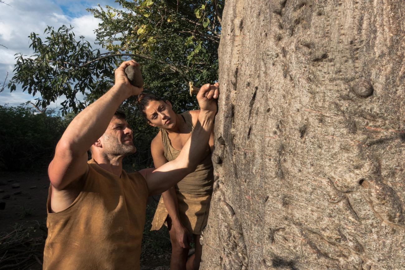 Schindler and Bigney’s show is not a prehistoric live action role-play or live interpretation of how the past was like (just look at their shoes). It is a survival show. They demonstrate techniques within a very good narrative and teach great stories about the survival of early humans in tough circumstances while showing different options.