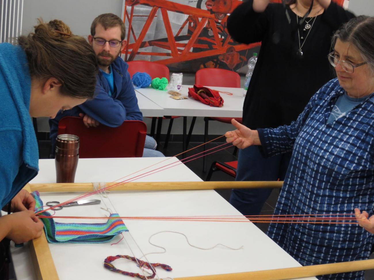 This year the theme was ‘Non-woven Textile Techniques’. The event began with a well-received talk from Ruth Gilbert exploring the problems with current terminology and how definitions changing between practitioners skilled in different fields can cause confusion. Following this, Anne Reichert presented a new technique to reconstruct a lime bast textile find from Lake Constance. Petra Linscheid presented textile structures from classical Mediterranean and Near Eastern sites, challenging the assumption that knitting only began in the 11th century AD. This was followed by a practical session during which participants were able to attempt their own replicas. Harma Piening presented examples where nålbinding and knitting have been misinterpreted as one another. Throughout the week, reconstructions and workshops were carried out to further explore Ruth Gilbert’s findings.