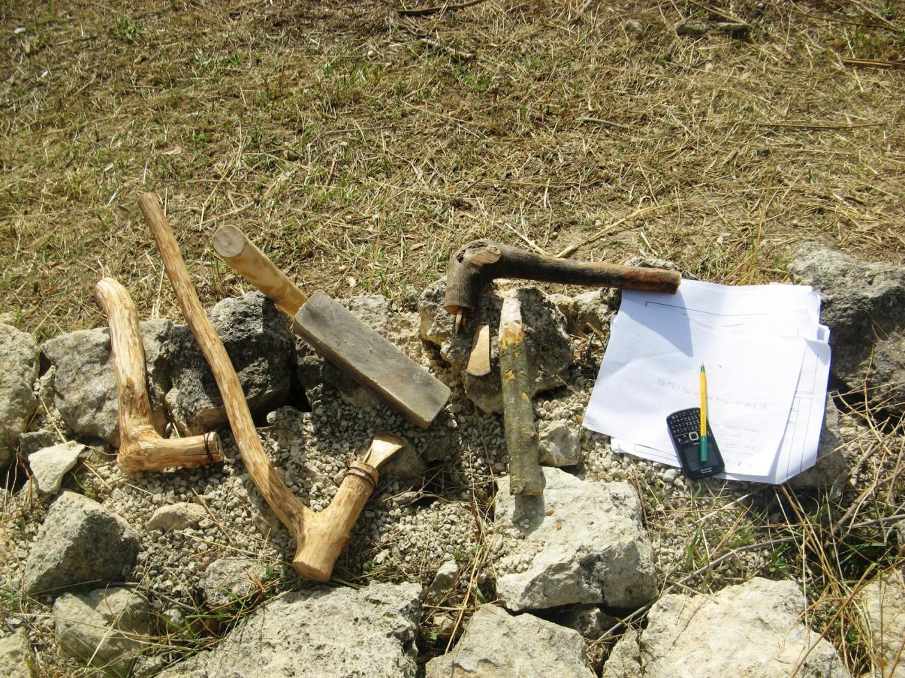 The first important observation is with regards to the choice of raw materials: they must have the characteristics that make them suitable as construction materials (such as flexibility, strength, stem length / branches for the wood used in the walls, weather resistance, et cetera). They should also be easily accessible and transportable from the point of collection to the working area. In this case, the geomorphology of the territory is characterized by the presence of calcareous rocks, which were also used in building the archaeological model. This rock is not very compact and it is particularly susceptible to weather erosion. At the same time, however, it is easy to work. It can be crushed without much effort.