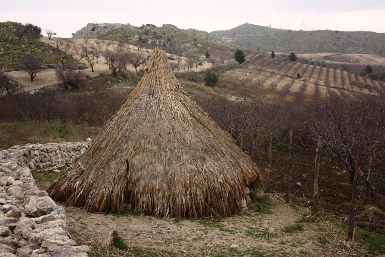 Ethnographic research on vernacular architecture in Sicily, mainly the study of pagliari, were helpful in developing the reconstruction hypothesis for the elevation of the hut and in choosing the building materials (Caruso, Speciale in press). Pagliari (or pagghiari) are shepherd’s shelters that could be occupied seasonally or all year long. Typical features are the design, usually square or rectangular but also round, dry stone wall construction, and the gabled or conical thatched roof (See Figure 3).