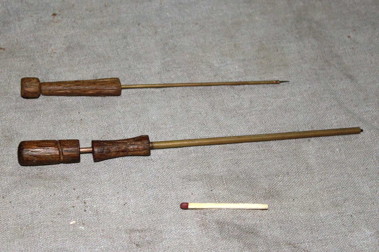 The manufacture of the instrument used in the re-enactment was based on the translation of the Medieval texts. Yperman described the instrument as follows: “Take a small iron pipe in which an iron pricker is inserted” (van Leersum 1912:113).