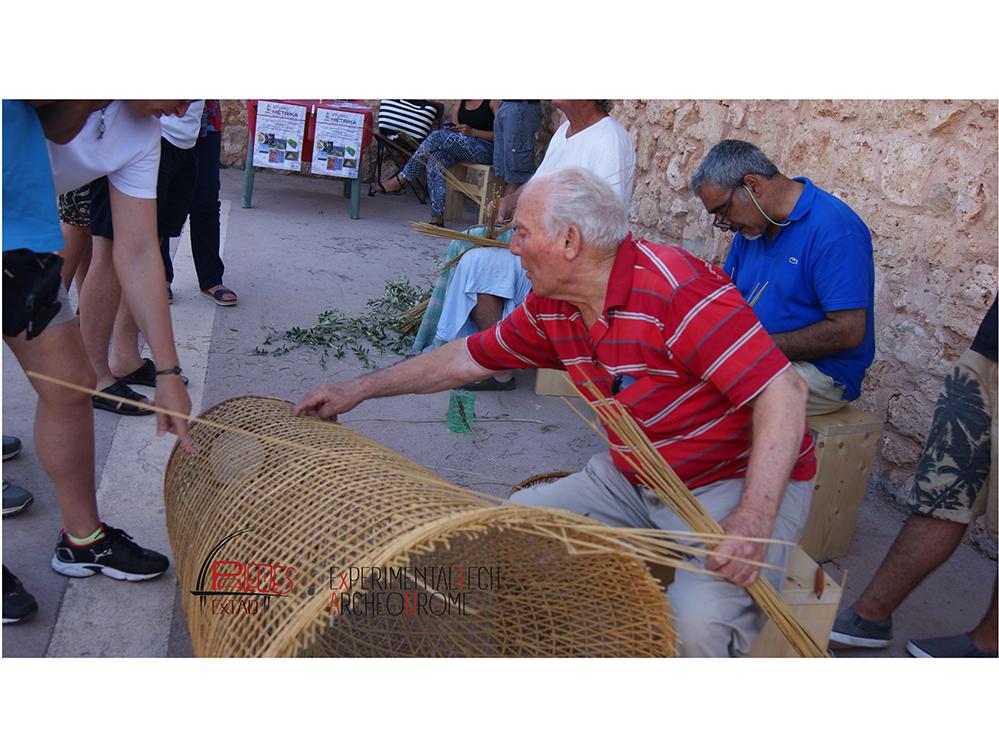 Other areas of the festival were dedicated to the ancient traditions of handicraft. Many participants who handcraft had been actively involved in this Archeofest edition. In fact one of goals was about creating a connection to study the ancient technology and the local ethnographical tradition using an analogical-comparative key. The people involved included specialists who construct stone walls and ‘pajare’ (salentine typical rural buildings) (See Figure 20), who create fish traps (See Figure 21), and who specialise in textile decoration techniques utilising twines, along with weavers (See Figure 22) and spinners.