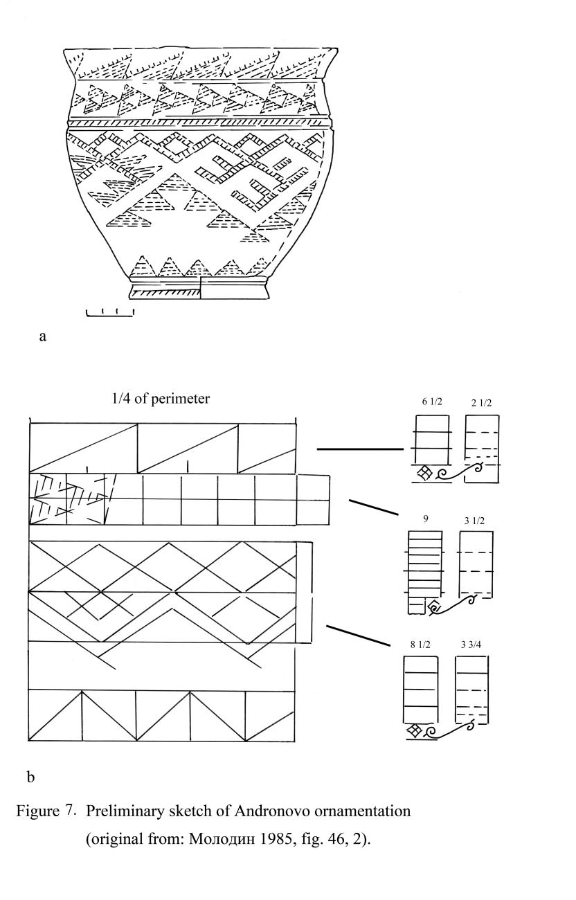 According to Ivanov, “… the most simple ornaments require compliance with certain conditions …in creating an ornament, the person …should be guided by a feeling of measure, order, and calculation” (Иванов1963, 7). This remark naturally raises more general questions, which lie beyond limits of the Andronovo geometric style ceramics.