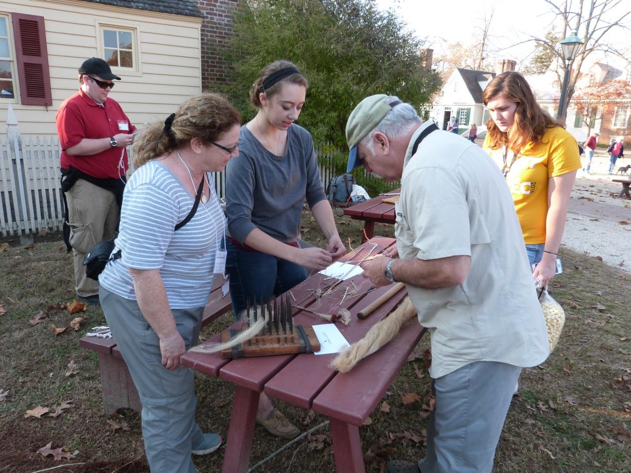 The breakout sessions on Saturday brought to me a new conference experience that I had never seen before. Having these sessions in Colonial Williamsburg brought a new level of context that I don’t believe had been achieved before. Having experimental archaeologists and prehistoric craftsmen displaying their skills next to their Williamsburg counterparts was excellent. By being in a public setting, visitors to Williamsburg were able to see new skills and the evolution of technology. The iron smelting demonstration by Neil Peterson ad Darrell Markewitz was very insightful. It is one thing to see a blacksmith make a nail, but having a bloomery furnace converting ore into iron next to the blacksmith's shop gave a deeper meaning to the experience. Visitors were able to see how much work was actually needed to make a single ingot, and they could then go inside and see what could be made from that ingot. Another demonstration I enjoyed was “bow making in a day” by Diederik Pomstra. The speed and skill that Diederik uses is astonishing, and it is always fun to see him work. These sorts of demonstrations are not seen often in the United States, and being able to share that with the public was a great contribution from the conference.