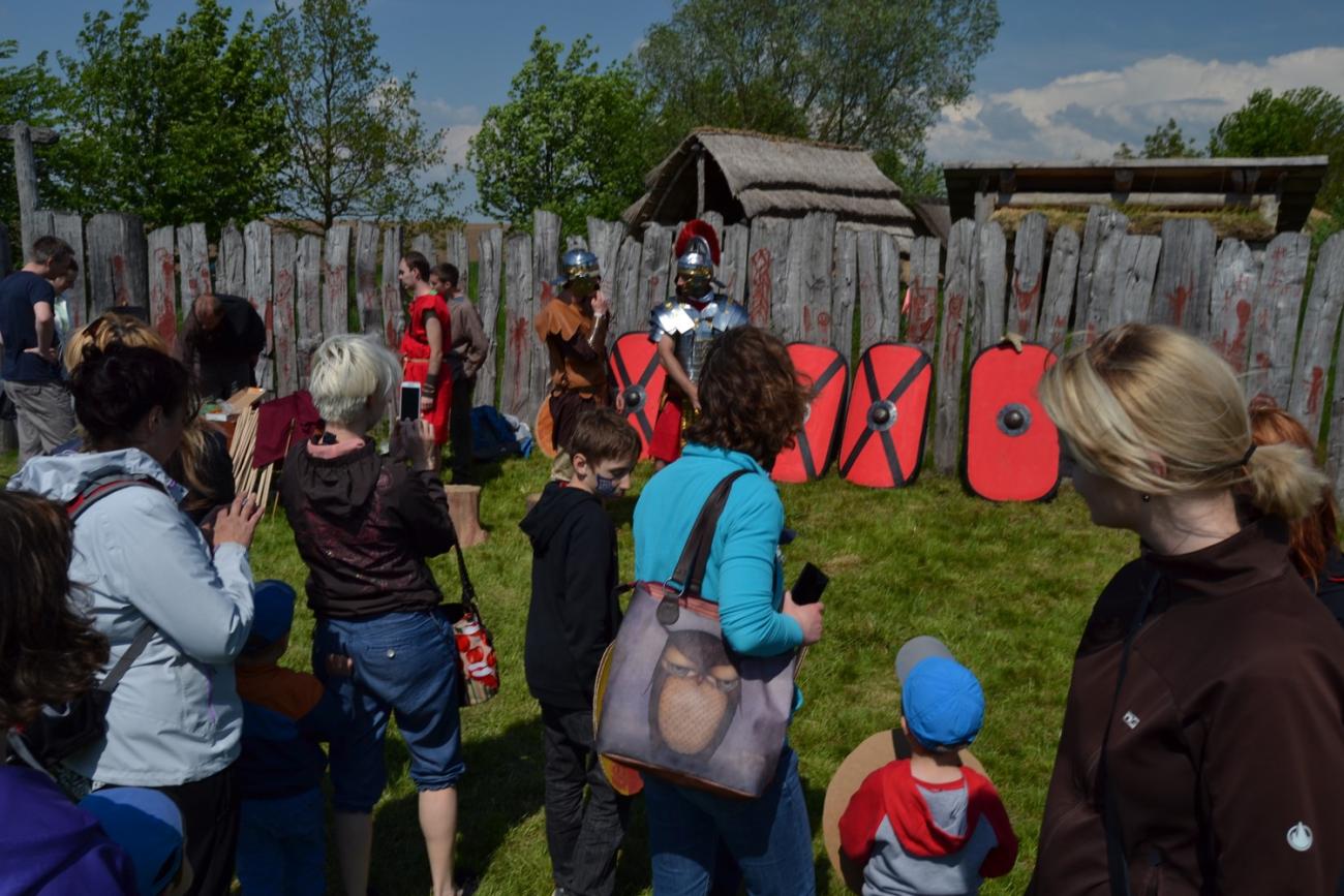 May: Romans and Germans theme presents the Age of the Roman Empire and the Migration of Peoples. The topic concerns the border regions of Rome, with demonstrations of fighting (See Figure 13). There is a possibility to shoot a bow, throw a spear, and play board games with a ‘Roman’. Children can also make a painted shield, and have their face painted as well.