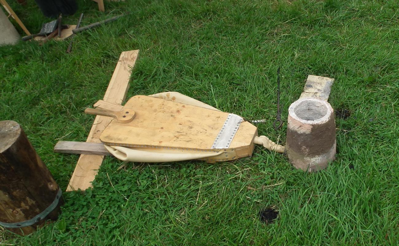 A variety of bellows were also in use. Most popular were leather bag bellows of various sizes. Roman pump bellows were used by Thomas Leimbach, while Viking style pump bellows, with the valves on the top were used by Chris Stein and Kevin Frank.