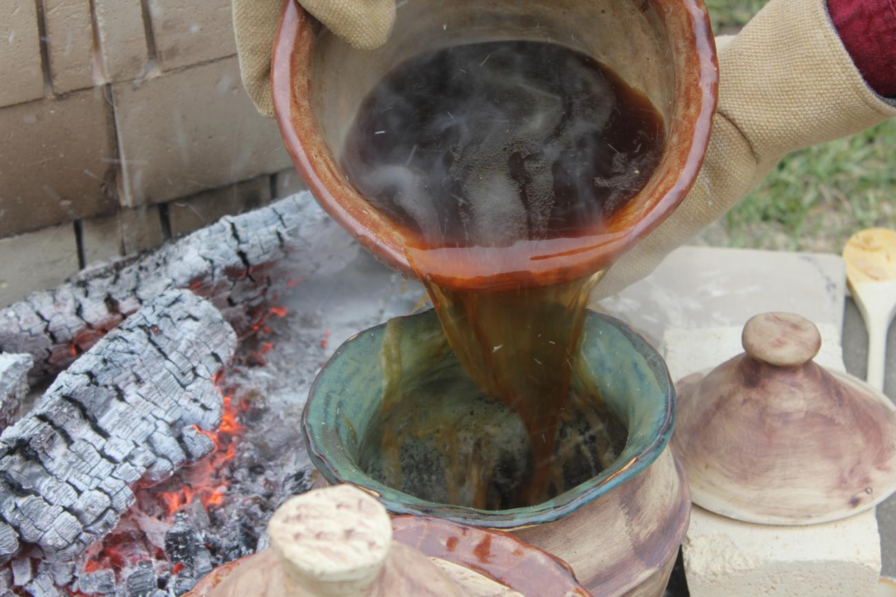 One vessel was used for this dish, heating the milk, adding the bread, saffron, honey, and spices (See Figure 6). This was called Golden Bread Pudding by the participants.