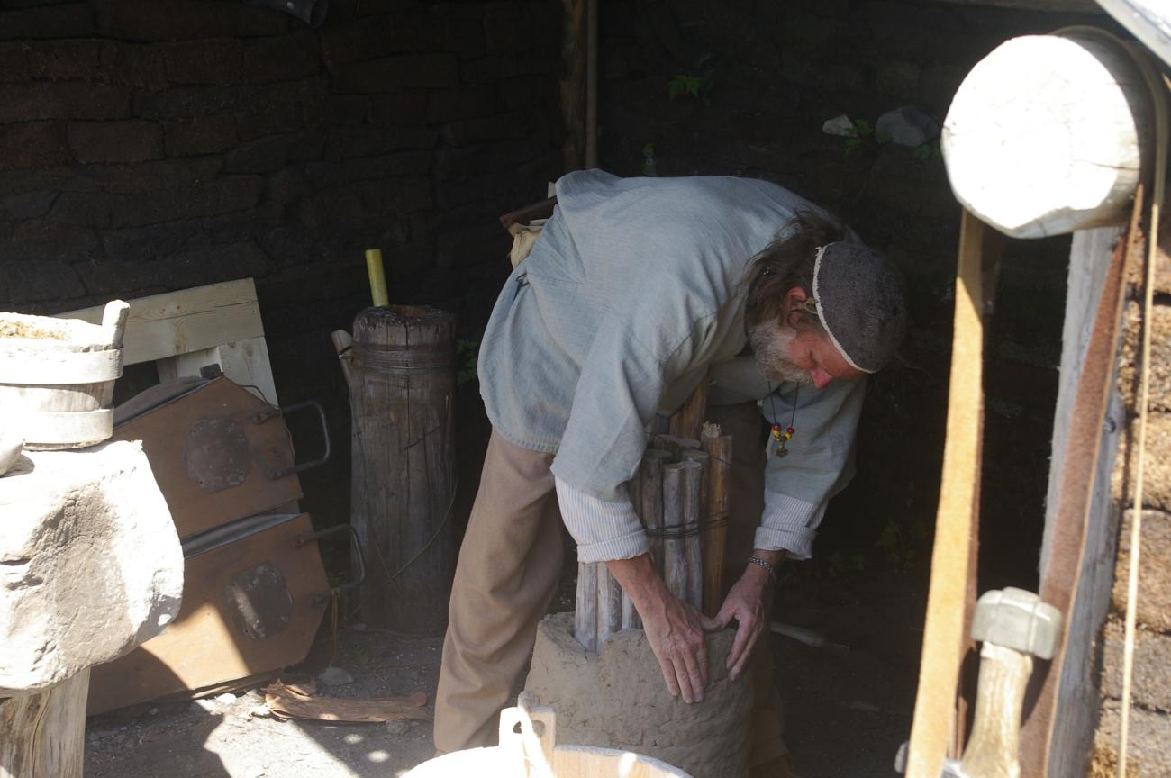 Richard Schweitzer set up a clamp bench to work on a bow. He also spent many an hour welcoming visitors into the reconstructed enclosure while telling them stories about people and gods of the VikingEra, based on the sagas.