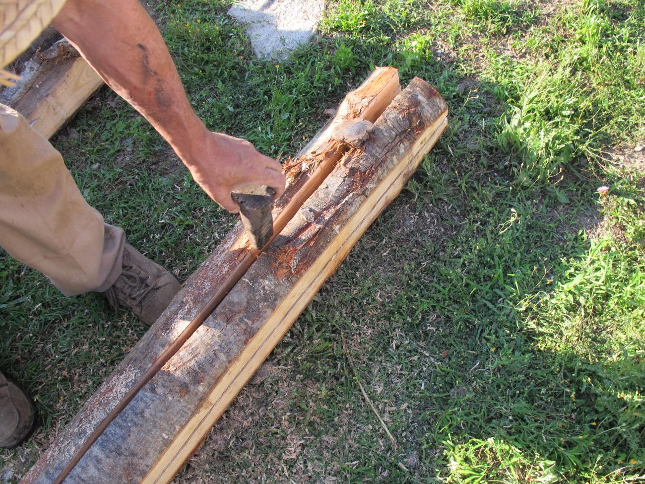The construction was built by a team of four people, using traditional tools such as a hand saw, clamp, gimlet, Catalan type axe, wood hammer, chisel, two-handed wood saw, heavy wood hammer and metal wedges.