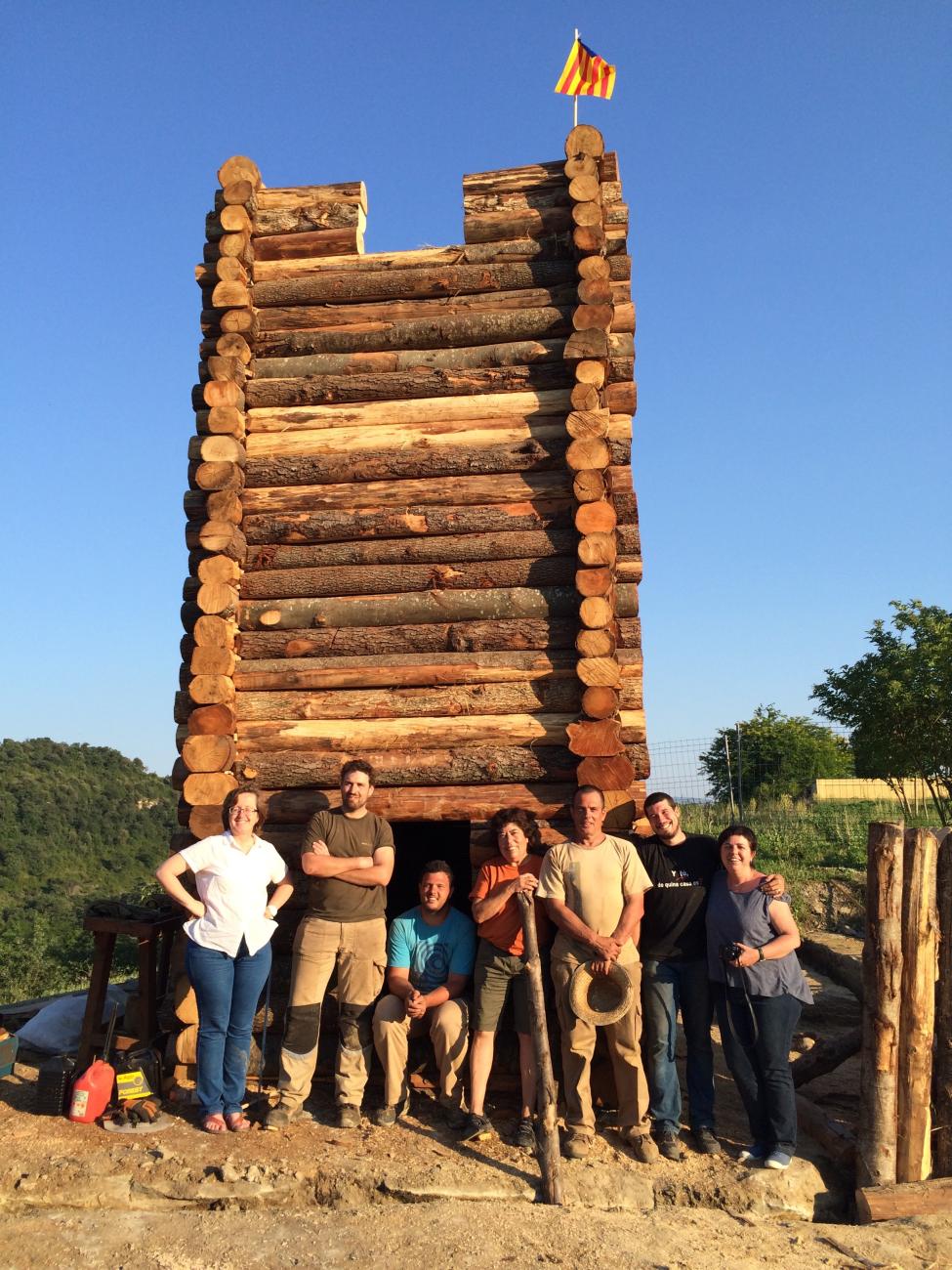 During fifteen days of June 2015, the team of l’Esquerda worked in a research project to build a Carolingian wooden watchtower on the River Ter, in Roda de Ter, Catalonia, Spain (This Research Project was approved and granted by the Spanish Ministry of Culture (DGICYT, HAR2012-36497) for three years 2013-2015.). The idea was to test our hypotheses experimentally, (a) if the wooden watchtower could be built without any metal nail, (b) how it worked, and (c) its resilience.