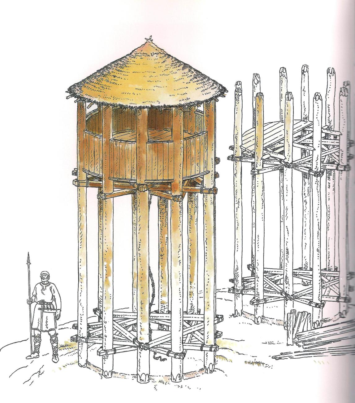 To construct these towers, the Frankish army used standard measurements based on the measure of Carolingian Imperial Feet. The trees were cut with the same length (4-8 feet) and transported to the construction site.