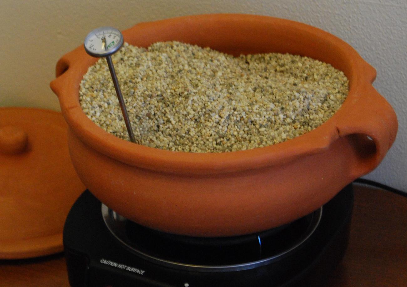 Natural Mummification: For natural mummification it was necessary to mimic desert temperatures during the daytime and night. The Sahara desert was chosen as the model for desert temperatures since it is the located in North Africa. Circular cooking burners were used to heat the sand matrix in which the rat carcass was placed. Burners were turned on in the morning to heat the sand during the day, then turned off in the late afternoon to ensure the sand cooled overnight. The rat was rinsed with saltwater then submerged in clay pots filled with sand heated by burners to 30-57.2ºC (86-135ºF). Throughout the desiccation process the sand maintained temperatures of 48.8-60ºC (120-140ºF) (See Figure 3) (Columbia Encyclopedia, 2000).