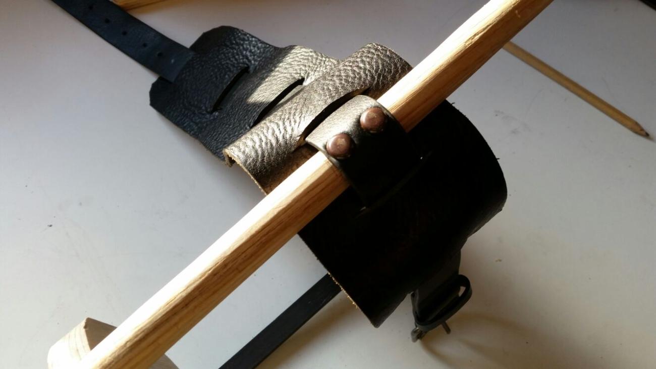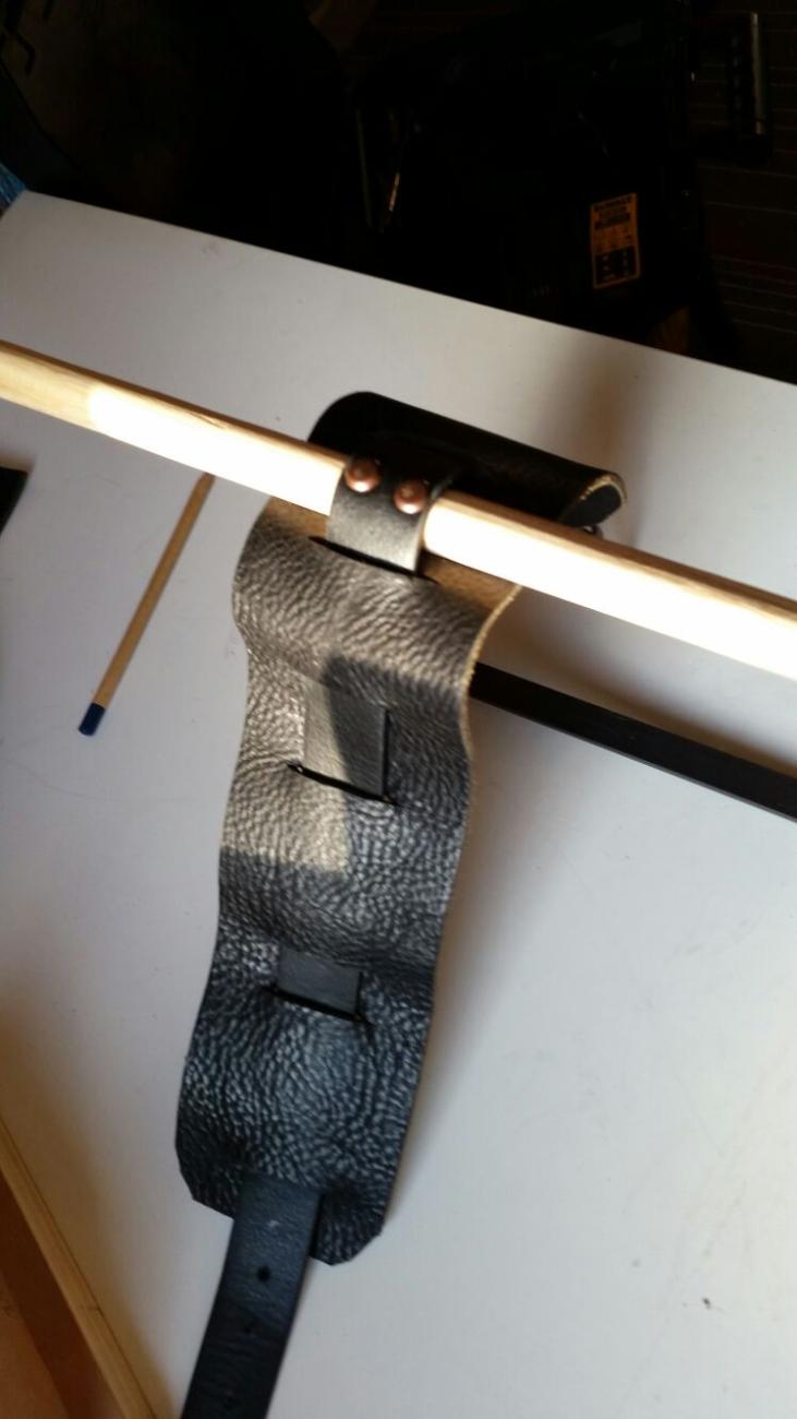 Consequently, the leather that was sourced and secured to the artificial limb in this reconstruction was a reused belt leather. This decision also offered the opportunity to make the straps adjustable to fit the stump and waist of the wearer, not only a positive for this experiment which means a range of people can wear it but it also would have proven beneficial for original wearers due to the changing stump sizes after amputation. Gray (1855) explains that for about two years after amputation, the stump goes through a series of shape changes as a result of swelling, possible infection, irritation from ill-fitting sockets and prosthesis. Therefore, whilst the literature does not confirm this, it may be suggested that a useful attribute of utilising adjustable belts as straps meant that the wearer could self-manage the fit of their artificial limb. There are two leather straps attached to the lateral stabiliser, 0.30m apart. The lower thigh strap is 0.09m wide, it sits 0.10m above the stump support and was attached to the lateral stabiliser utilising a slit in the leather that already existed. It slipped over the top of the stabiliser where after securing it to the wood with two copper alloy tacks, it was finally attached with another two copper-alloy nails to the thigh support (See Figure 12 and 13).