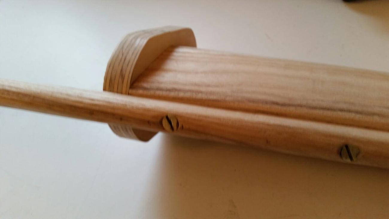 A total of four copper-alloy nails were used to secure the lateral stabiliser to the peg (See Figure 9), and two were used to secure the stump support to the peg (which will eventually be covered with leather). The holes for the nails to fit through were roughly made using a hole saw and then hammering the nails into the wood so they created a tight, secure fit.