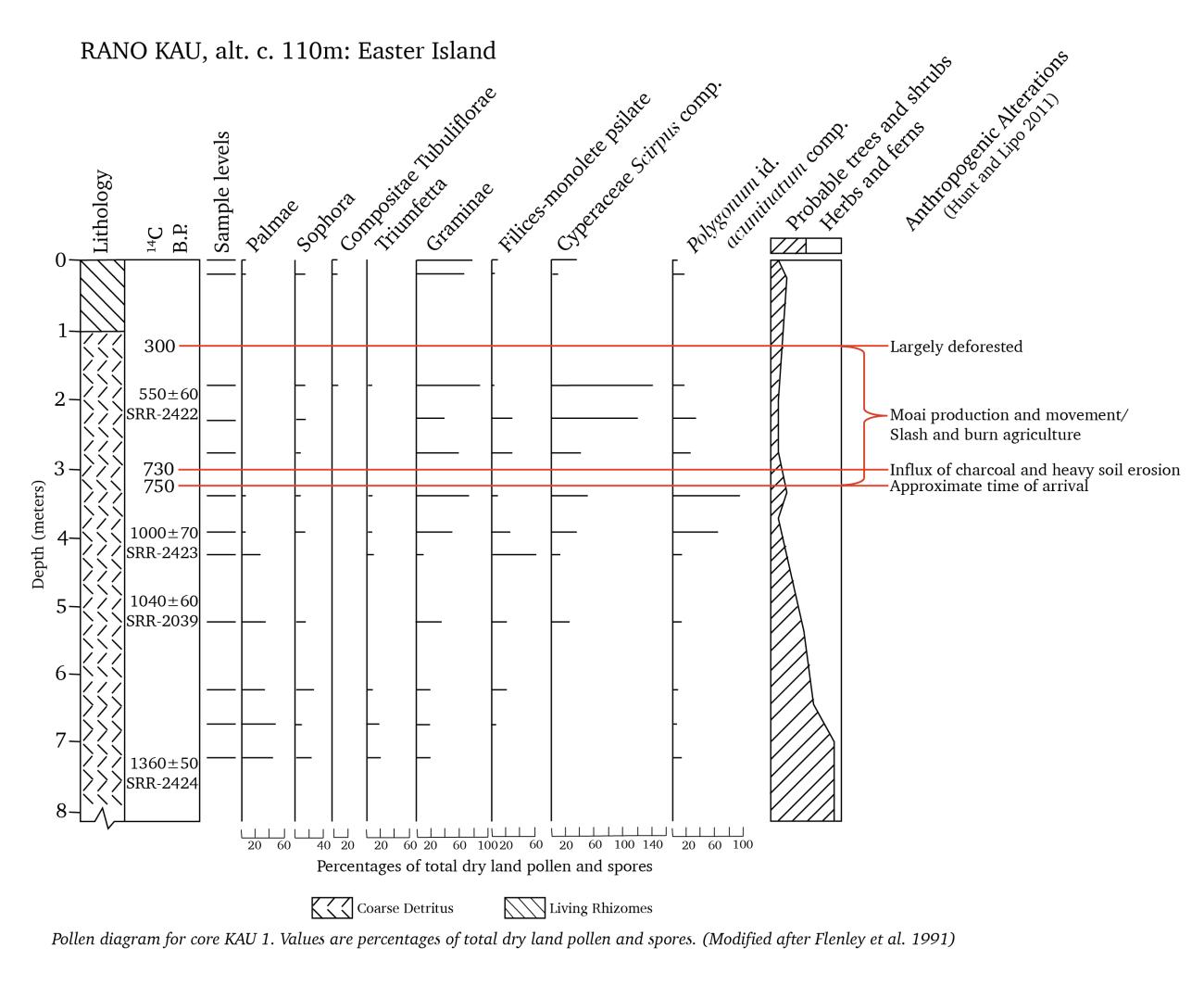 Flenley, J. R., 1993. The Paleoecology of Easter Island and its Ecological Disaster. In: S.R. Fischer, ed., 1993. Easter Island studies: contributions to the history of Rapanui in memory of William T. Mulloy. Oxford: The Short Run Press, pp.27-45.
