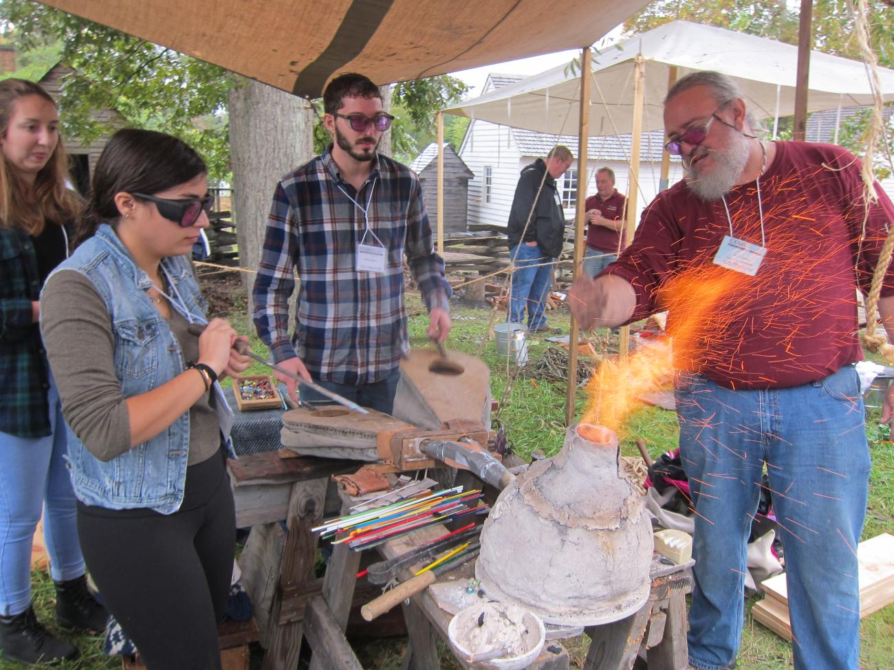 To cap off this wonderful experience, the resident founders at Williamsburg had invited Fergus Milton for a special bronze casting demonstration Sunday morning at their shop. To experience the prehistoric process, so closely followed by the much more refined methods of the 18 th century Geddy Foundry, was an appropriate ending to an otherwise perfect immersive weekend of reconstructive and experimental archaeology. We are ready to come back for more next year!