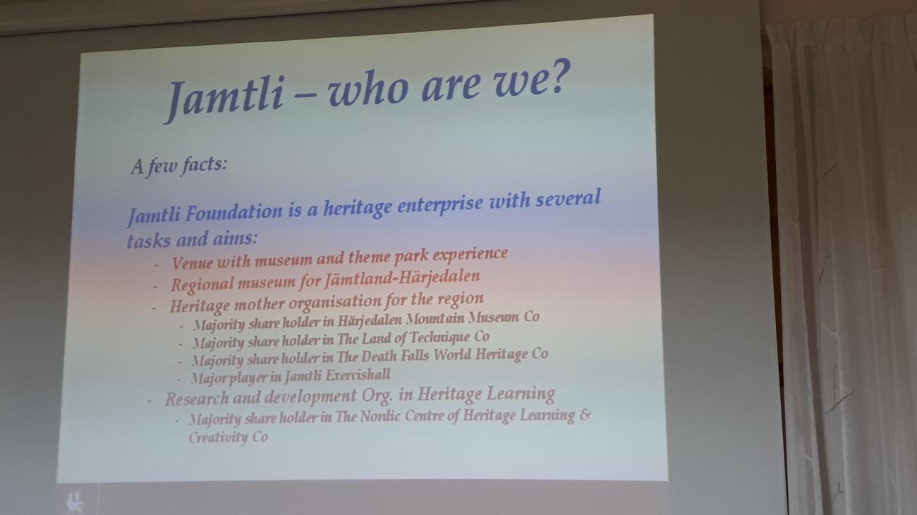 Both organisations are very much worth taking a closer look at; from the business end of how they are financed; on their approach of heritage as a social resource; on intercultural dialogue; and not in the least for their educational methodologies and research. Jamtli has a long tradition of special focus on pedagogical work in an open-air environment. The cooperation between these two organisations means they work closely on the borderline between theory, practice and research combined.