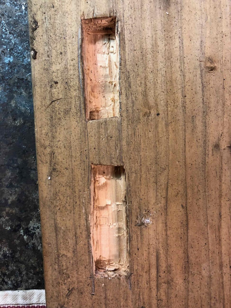 The experiment was limited to pouring molten sterling silver into trenches carved in a piece of construction lumber (See Figure 3). The carved out spaces (moulds) were each lined with a piece of coarsely woven cloth (See Figure 4). My experiment included three mould preparations to see if there was any difference in the finished ingot (See Figure 5). My three mould treatments included a trench lined with dry cloth, a trench lined with animal fat coated cloth and a trench lined with clay coated cloth. The clay was allowed to dry before the silver was poured into it.