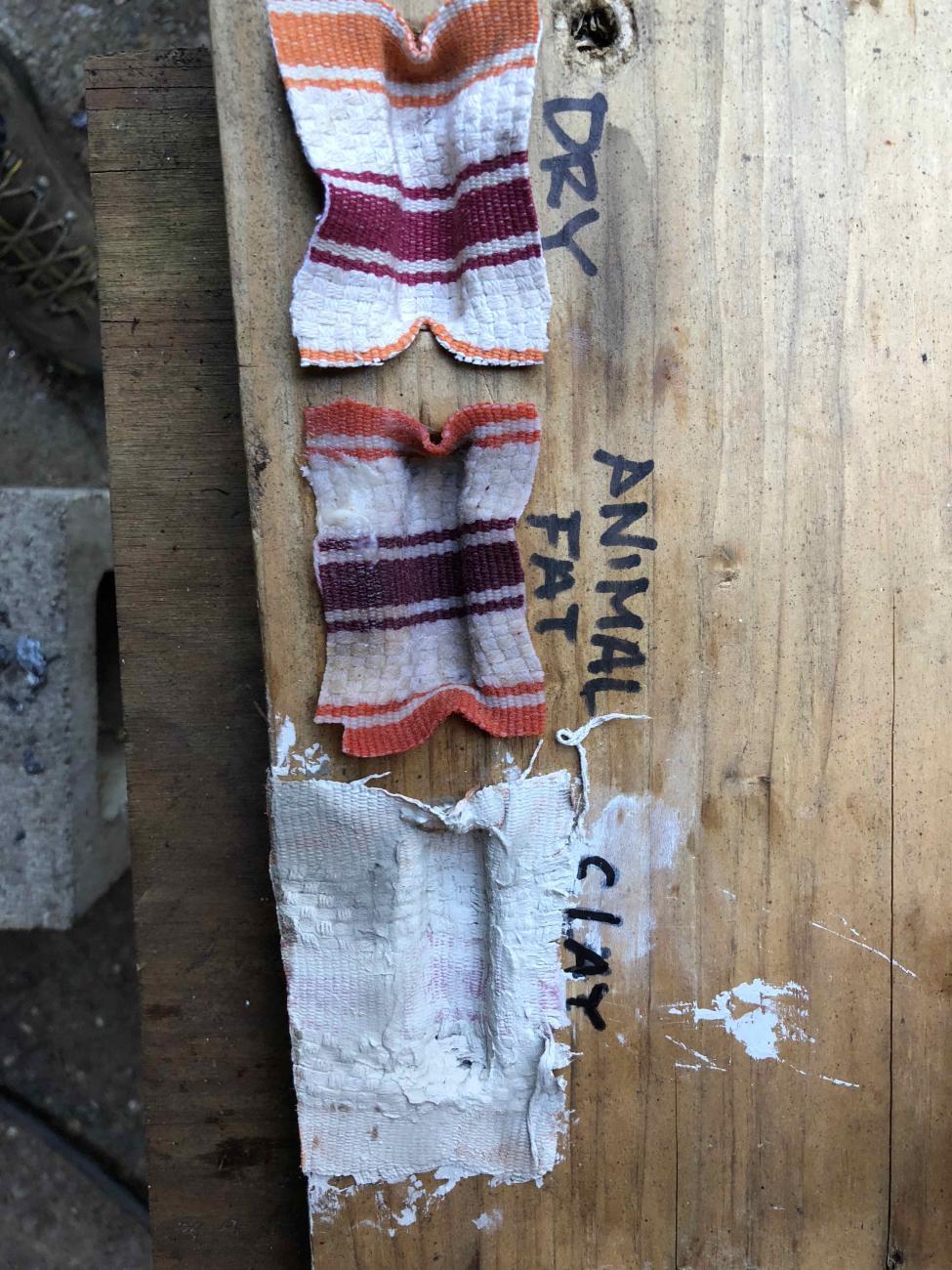 - The middle mould with the cloth saturated in animal fat is distorted in shape but has one small patch imprinted with the weave pattern (Figure 9).