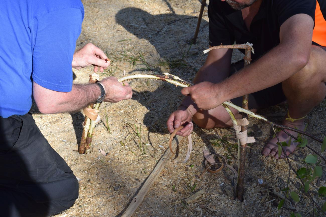 Where possible (given the limitations of inexperienced participants), we used technologies and materials that were sourced locally. As such, for most of the project we used unmodified stone tools, such as pieces of quartz, flint or slate, found on the ground or along the shoreline. All materials were procured on site, many of them in the work area.