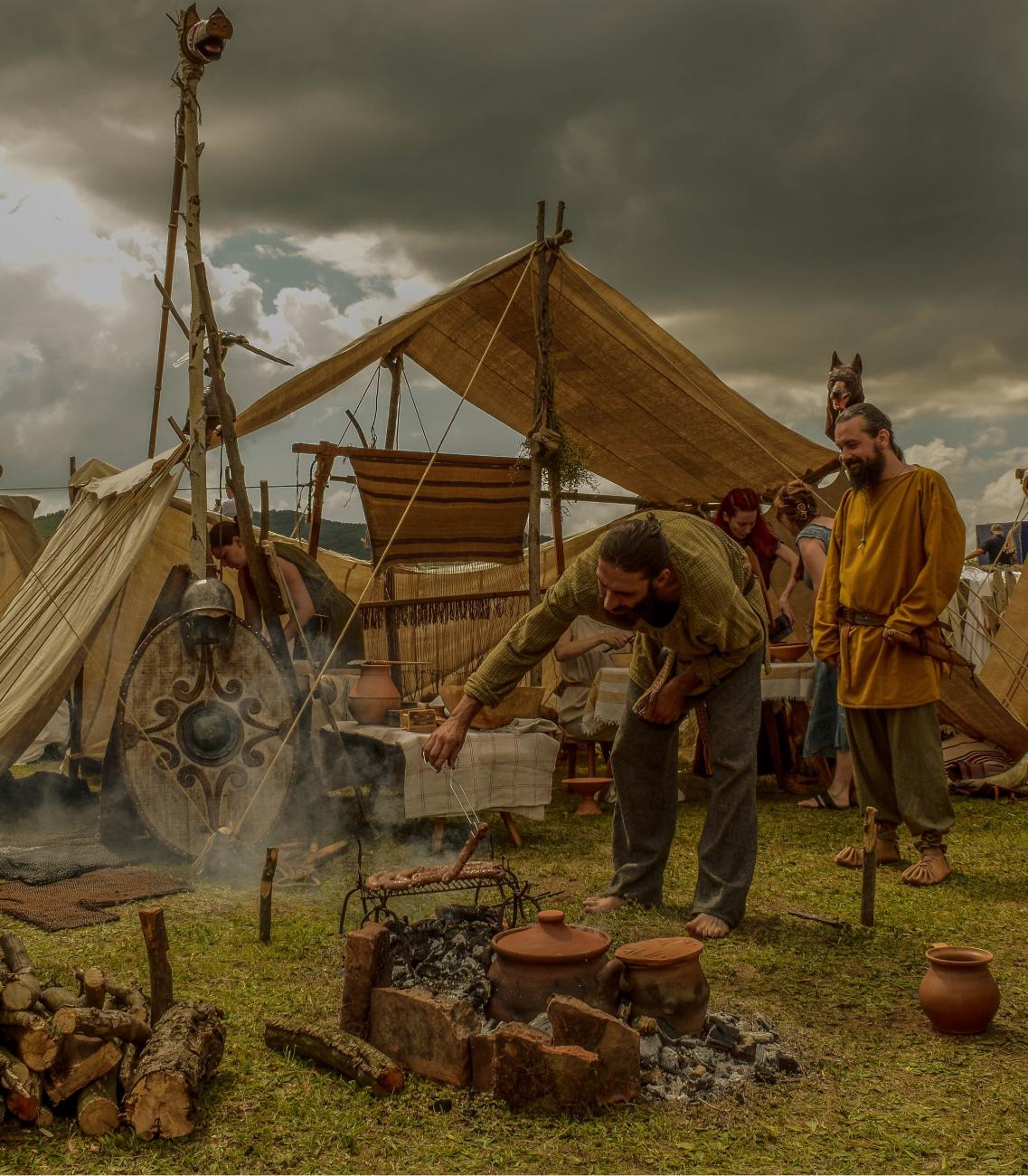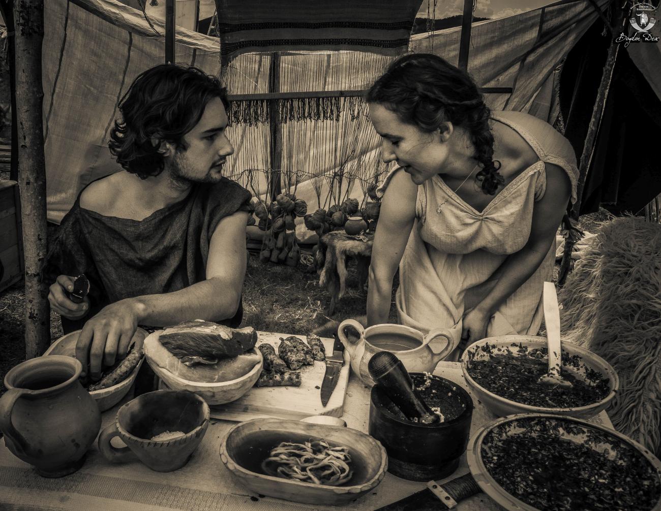 One of the nine groups participating at the cooking demonstrations was Omnis Barbaria Cultural Association (Romania). Five members of the association responsible for the cooking workshop, each with well-established tasks, were appointed: Marius Ardeleanu (responsible for verifying the historical accuracy of the artefacts used in ancient kitchens, and making the clay cooking pots), Vlad Săsaran (documentation on the ingredients of the Dacian period), Mureșan Andra (home recipe testing, and preparation of cooking ingredients), Sorana Ardeleanu (verification of historical sources and preparation of ingredients for cooking), and Cătălin Teletin (choice of a final recipe, home recipe testing, and making and keeping the fire for cooking at the festival).