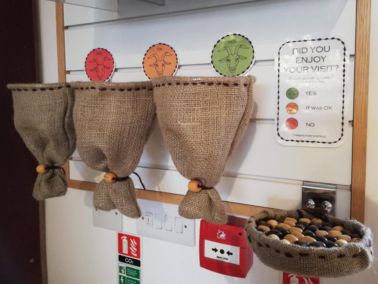 In addition to working with different resources to facilitate teaching, it is also very important to know what the opinion of our visitors is. Many times, as archaeologists, we tend to think that our customers will understand the same terminologies and theories as us, but this is not always true. Archaeology often uses abstract terms that can be difficult to explain and understand. It is for this reason that we want to know if we are doing our job in a good way. Therefore I have had the opportunity to create an evaluation area within the visitor centre. This is a small structure where people can say if they have enjoyed their visit or not. Moreover, I have created a comment box so visitors can suggest specific things or leave feedback (See Figure 3).