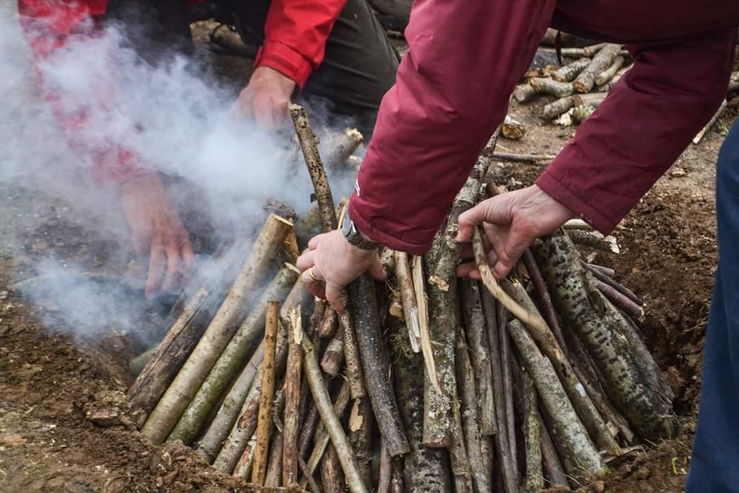What has been the main difference between doing my internship at Butser Ancient Farm compared to another institution? My job has been varied, from feeding goats and painting the walls of the Roman villa, to meeting a Roman legion re-enactment group and designing a new stratigraphy sign (See Figure 4). All aspects contribute to the important work of Butser. Nevertheless, the experimental archaeology is another subject that we have to present as well. It is for this reason that, during my stay, I have seen how they built a new Anglo-Saxon house, how to forge a metal tool, and how to thatch the roofs of the round houses (See Figures 5 and 6). I have personally worked on two main projects. Firstly, I have been following how the hypocaust of our villa worked over the period of two weeks, to see if we could feel any temperature difference inside the building, and thus formulate conclusions to affirm previous or create new hypotheses. Secondly, I created different clay pots for an activity based in the Bronze Age period. We decided to fire in an experimental fire, using a technique called ‘Pit Clamp Firing’. Through this experiment, we wanted to assess the resistance of the clay we were using, and to learn if the way we made the pots had been right (See Figure 7).