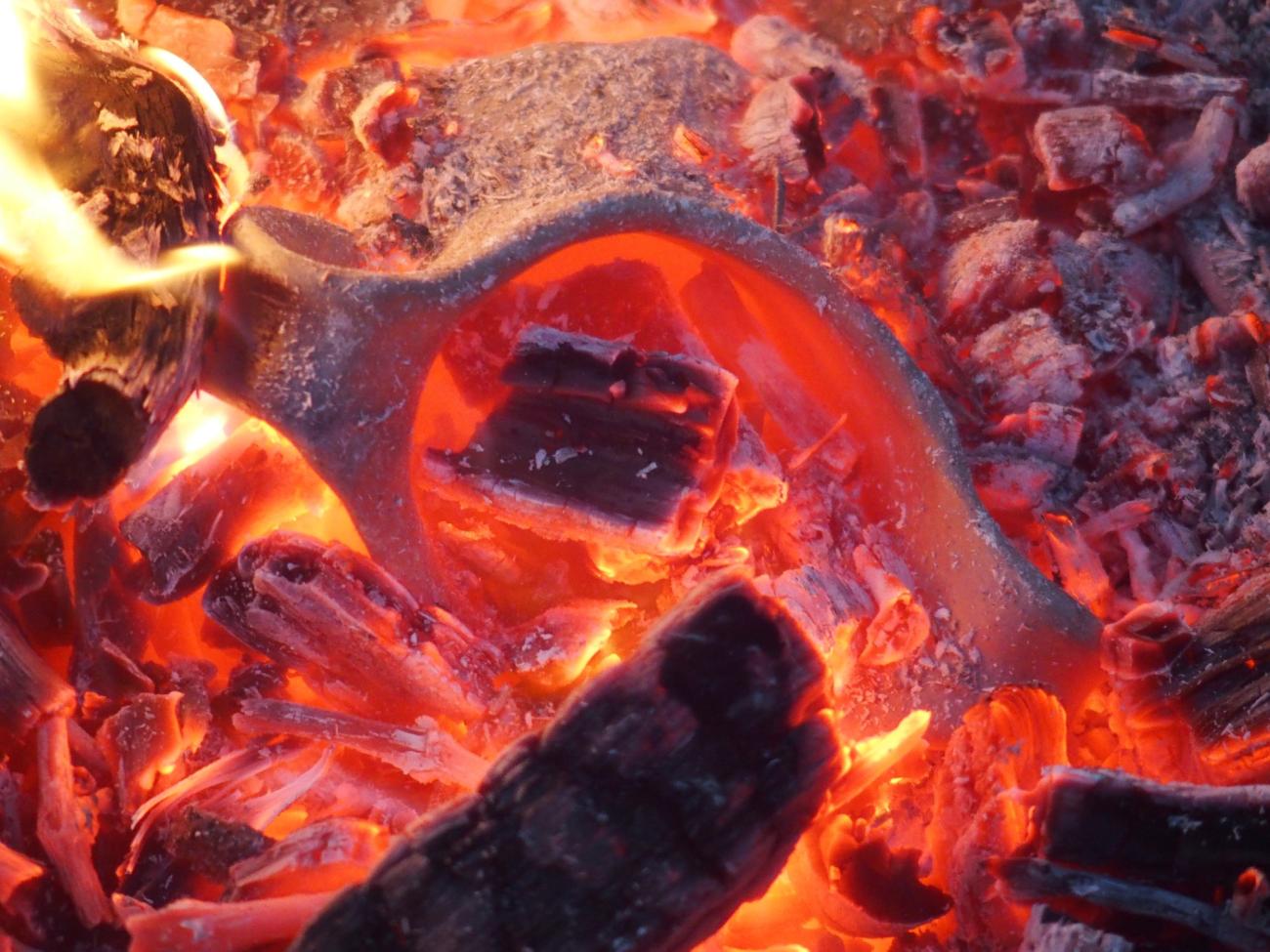 - In the next step, vessels were placed around a fire, and exposed different side to heat from time to time and gradually move closer to fire (See Figure 8). The temperature reached about 400 Celsius.