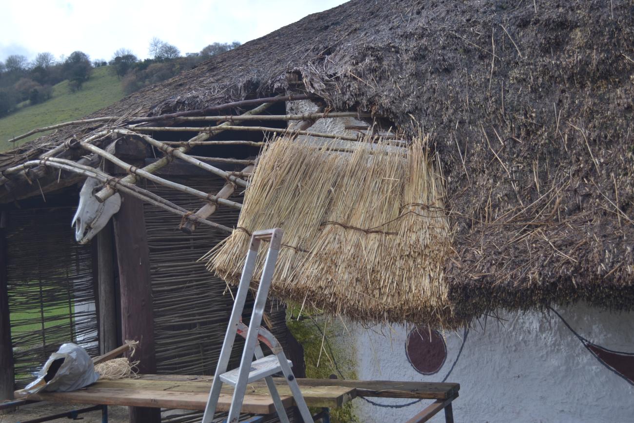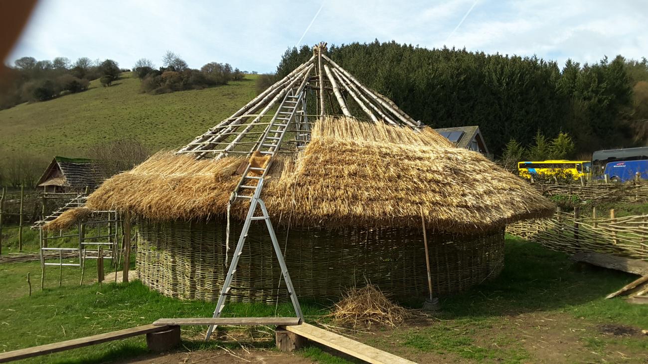 For the last 14 years, I have maintained this assumption as a steering mechanism while I've been experimenting with a new generation of buildings at the farm. However over the last 3 or 4 years there has been a distinct change in the way that the buildings have been behaving. Two of the changes concern the availability of materials, the production of timber, particularly during the process of coppicing (the wood is not growing in the same way). The timber used in the building of the houses is now growing faster and is therefore not as stable. The thatch used on the buildings is bought in, i.e. not produced on the farm. However, there has been a noticeable change in the quality of the straw in particular. The thatch is poorer quality, and is proving to be less reliable in providing a waterproof coating. The implications in the change of material means that it is not as easy to build a house accurate to the late Iron Age.