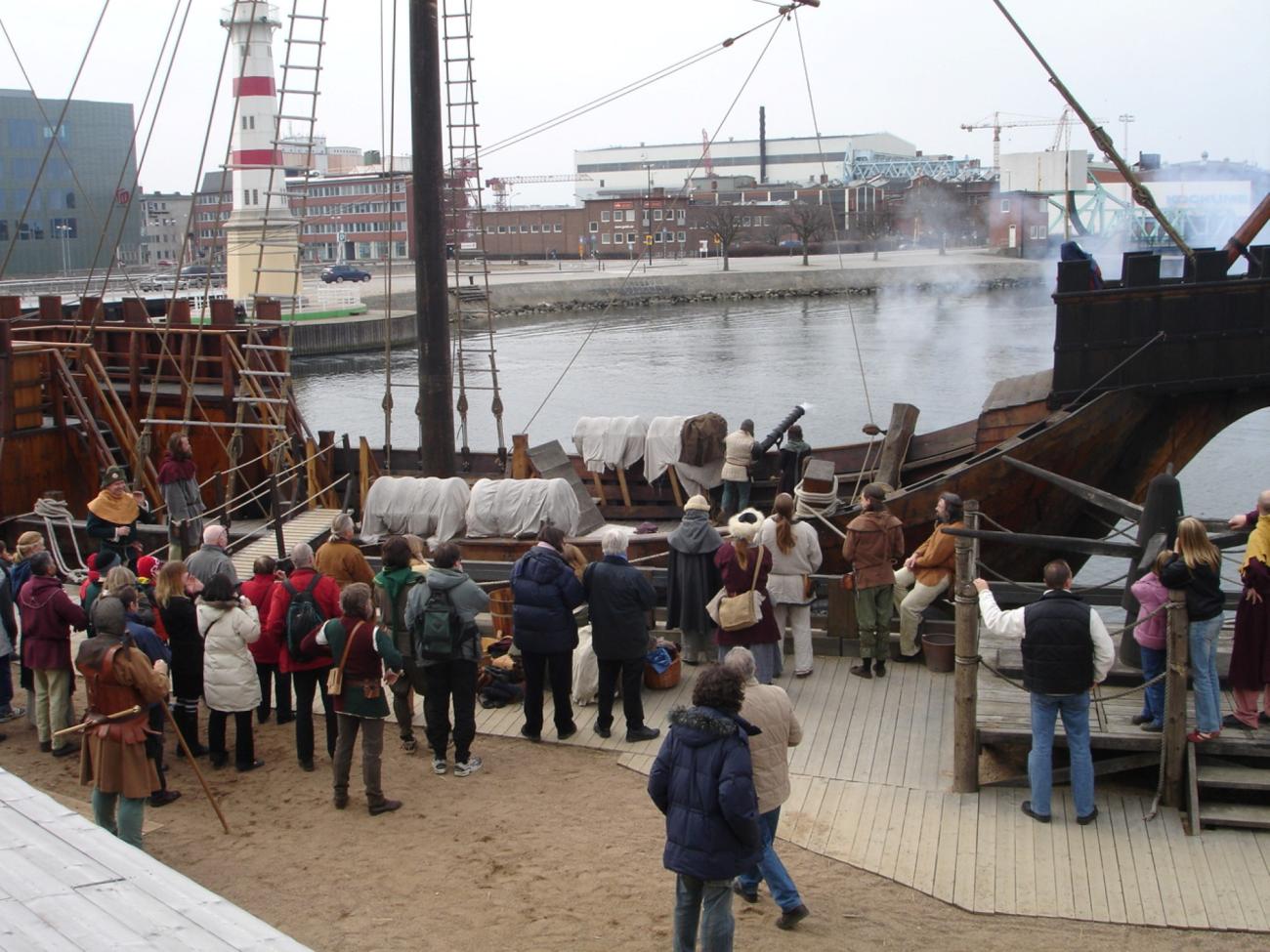 The high unemployment persisted, and we were contacted by Malmö City. They had seen how we had built up the concept around Foteviken and the historic site there and asked us: ”We have unemployed people and funding – do you have any ideas for a project to engage them?” Of course I did. We presented a proposal where we would make full scale reconstructions of cog ships, with the Skanör cog as the main attraction. Along with this a group would be formed to, based on historic and archaeologic material, produce medieval clothing and other objects. And another group to document everything with pictures, text and a web site. It was all approved.