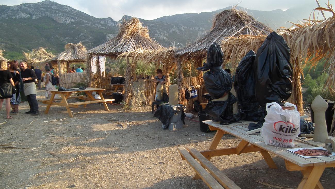 The symposium ran for two weeks and included activities for the public that included archery, craft workshops, concerts, and an introduction to archaeology for young people. Many of the artists are professional potters who learned to adapt their style to that of the unique abstract style of Bronze Age Cypriot potters. Participants recreated everything from monumental two-meter-tall effigy statues to playful whistles that imitated bird songs, working in small huts made of cane and reeds that were arranged around the site. Because of the heat, work commenced in the late afternoon and continued well into the evening. Mornings were spent touring North Cyprus and visiting museums and historical sites. These helped to ground the participants in the history and culture of North Cyprus and gave context to the art that they were recreating. In addition, a lecture was given by Sevim Çizer on her research and experimental work, recreating terra sigilata clay bodies and firing techniques that were used to replicate red figure ware pottery.