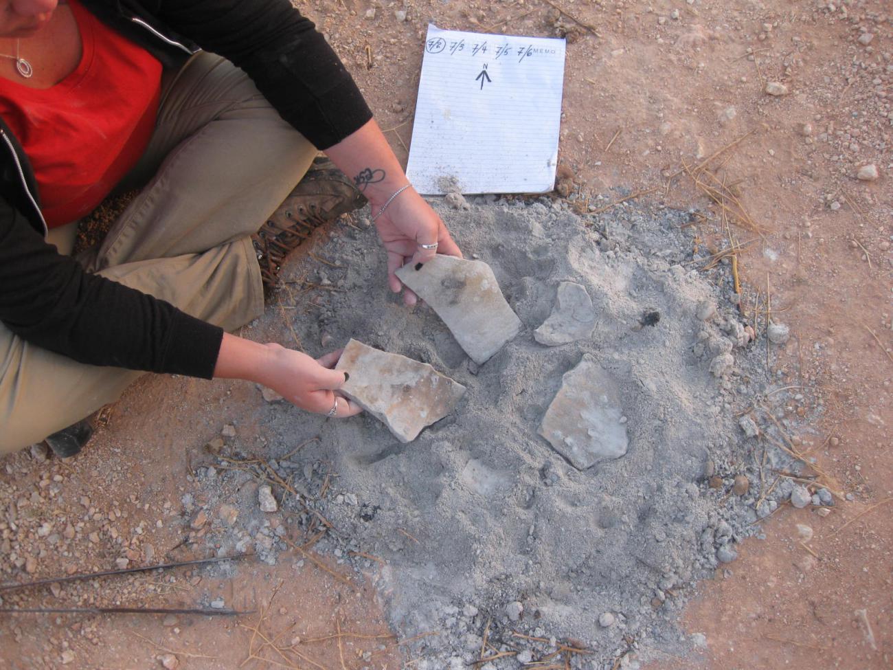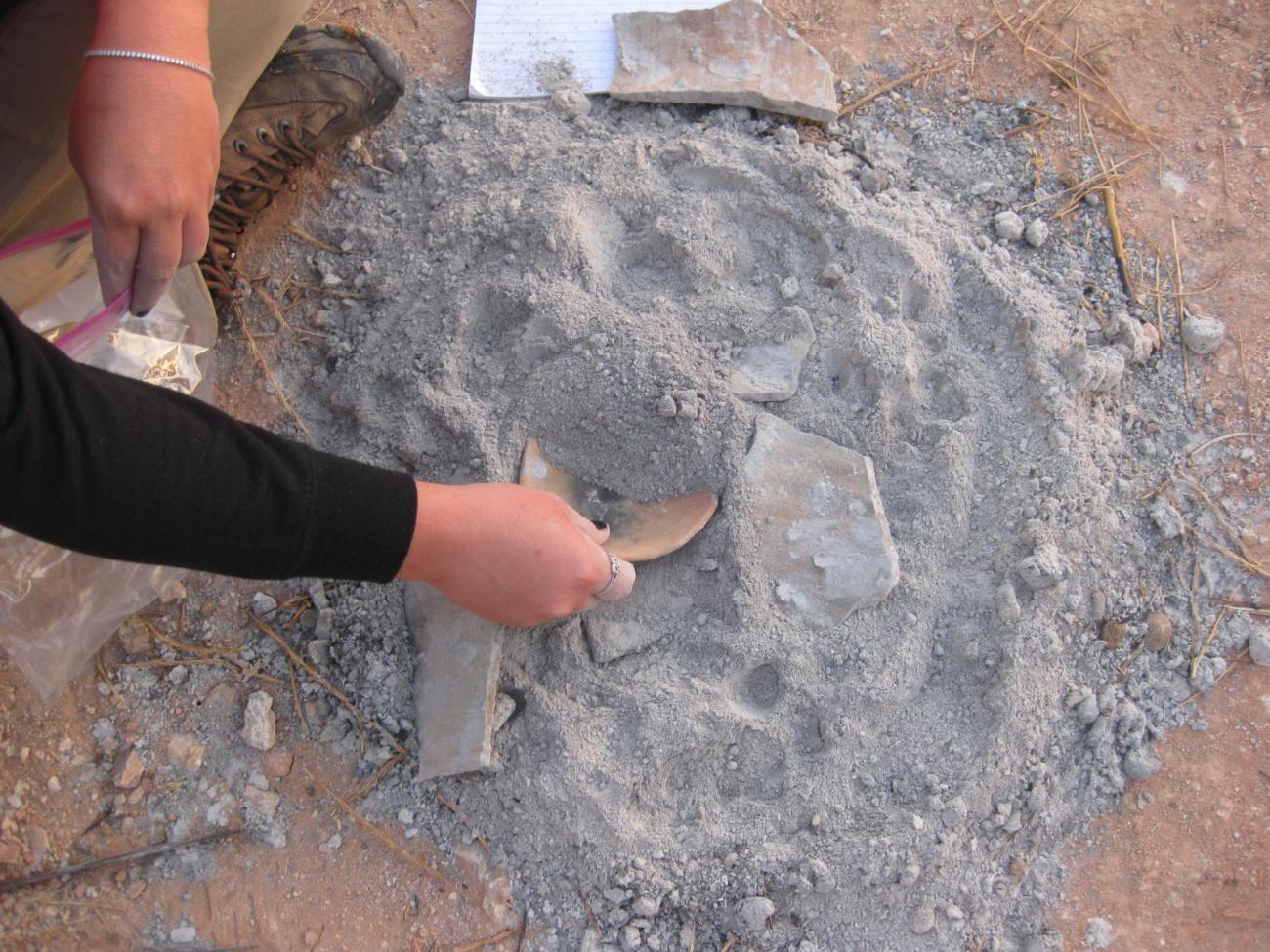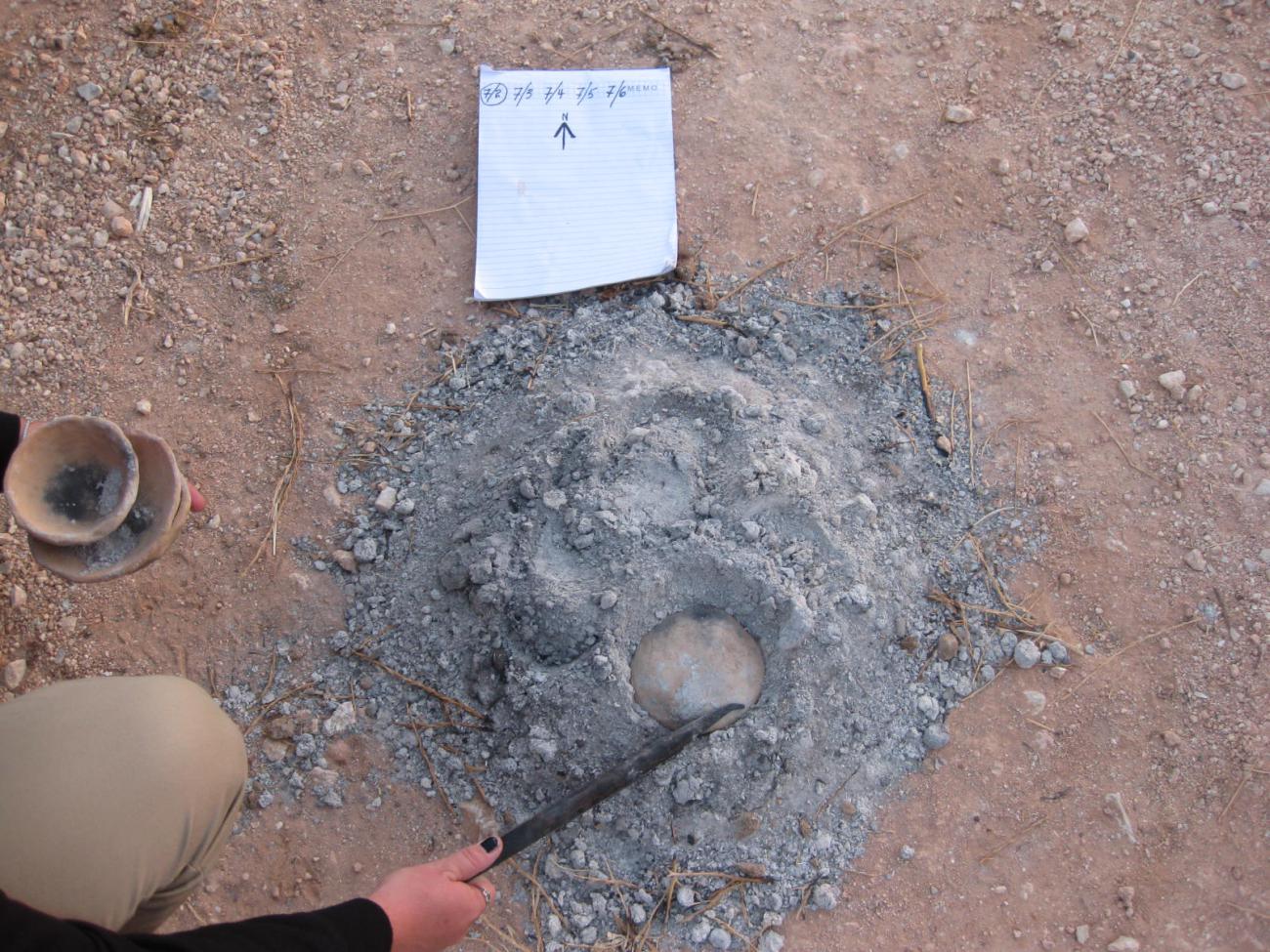 As the series of 10 experimental firings continued, the ashy hearth expanded, and changes were recorded in the diameter of the hearth.