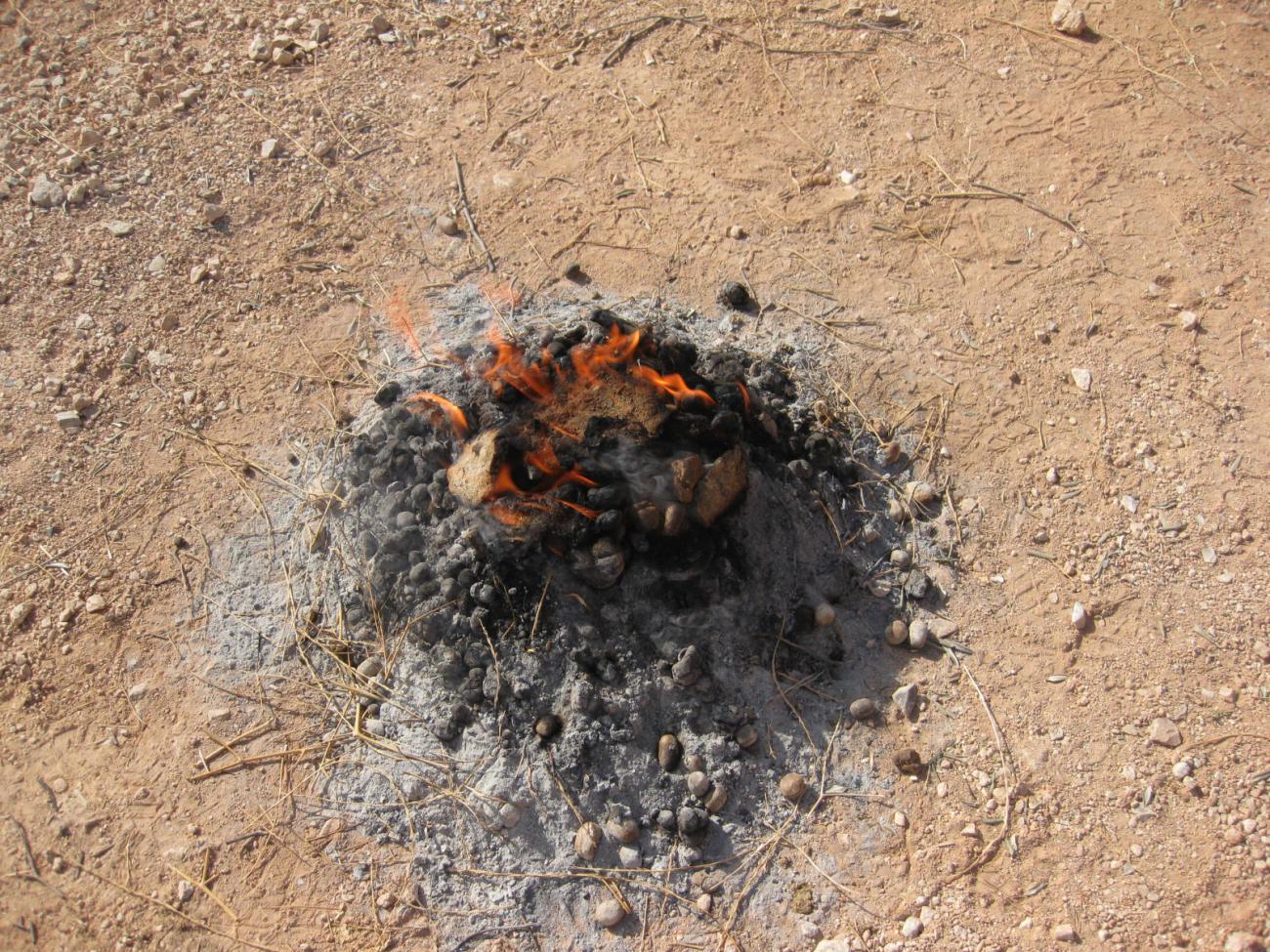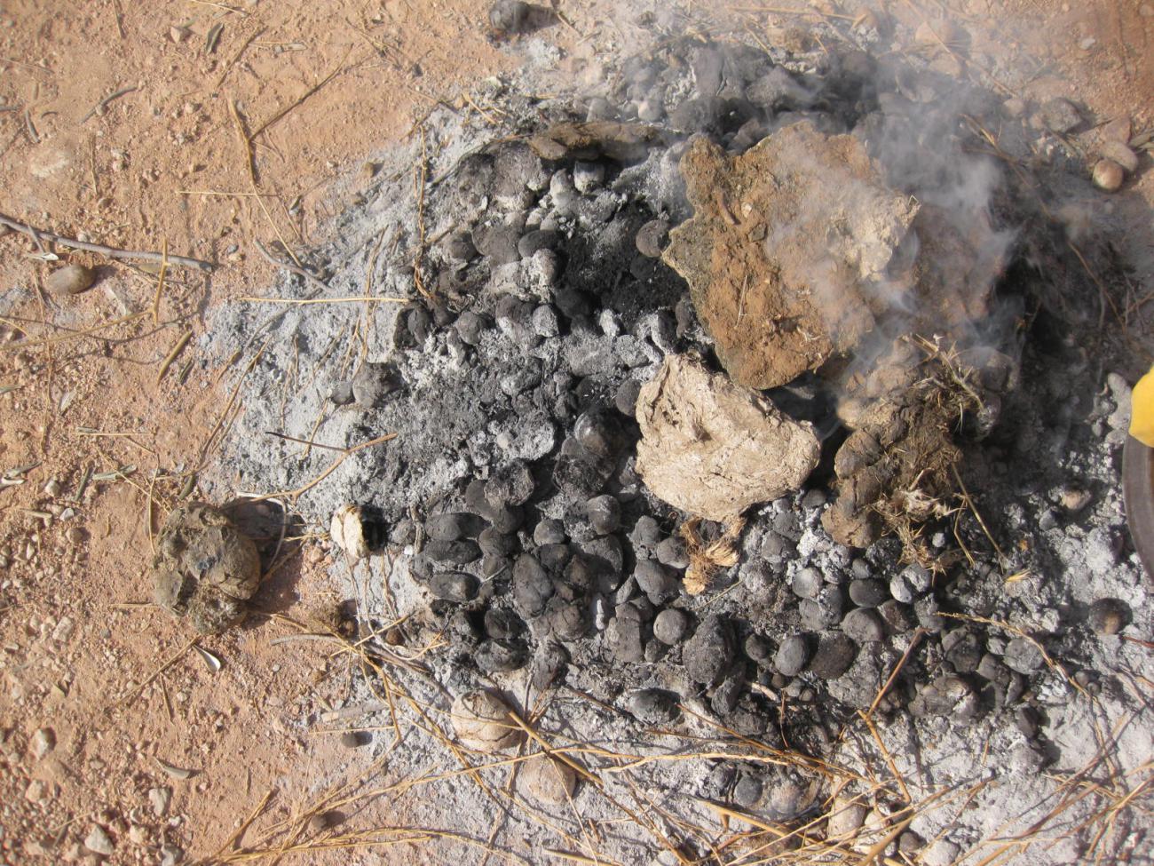 We submitted ash samples from several camel and sheep dung firings to Dr. Alexia Smith, University of Connecticut, for a study collection and for macro-botanical characterization to compare with ash from archaeological sites.