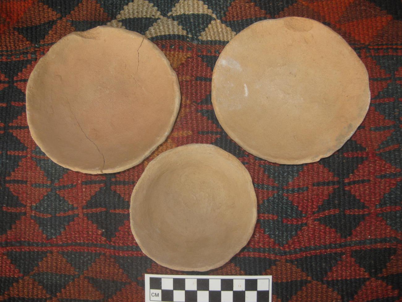 | Firing #9, C3 | camel / sheep dung | D=12 cm, H=3 cm, T=0.6 cm | 5YR 7/6 reddish yellow | 5YR 7/4 pink | 5YR 7/4 pink | 6 |
