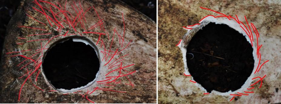 Another significant finding was that use of a compass produced few deviation marks, with the tool rarely âskippingâ out of the groove, unlike the archaeological example of the scapula from Grotte de Saint-Michel dâArudy and similar archaeological specimens where overshoot cut marks made during the marking out of the circular disc shape are clearly visible and very common (Bellier et al., 1991, p.20). Whilst using a compass did enable a higher degree of circularity (variation: 1.7 mm) this was only marginal to that achieved using a freehand method (1.9 mm). It was possible to achieve a virtually central hole by eye without the need for a compass.