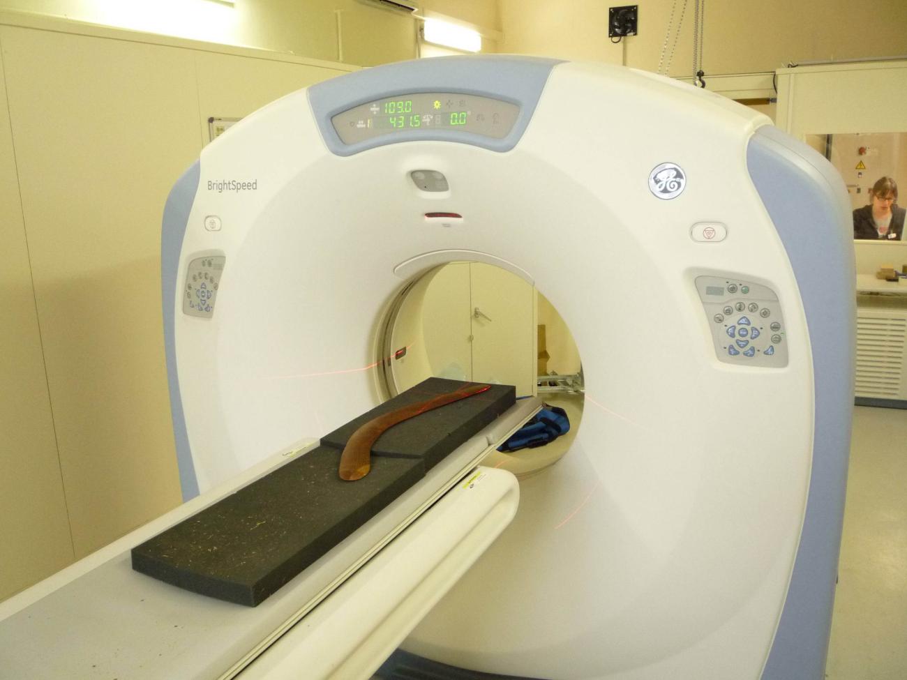 X-Ray tomography imaging is complementary to the manual survey carried out on each object and the examination and surface analysis of layers of resin, fat or pigment that may have been added on this type of object. This technique brings out the internal information that shows how these objects were shaped to adapt to natural wood pieces, completing the aerodynamic information deduced from measuring mass, surface, profile thickness, and twists made by external analysis techniques. In this way, one can better understand the construction of the object, its trajectory, its use and its cultural value.