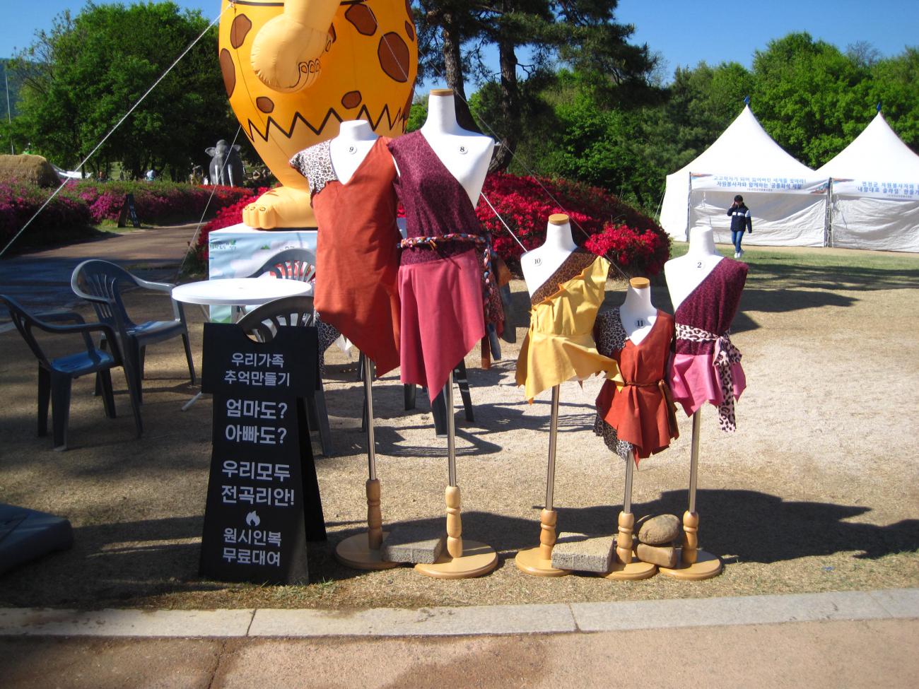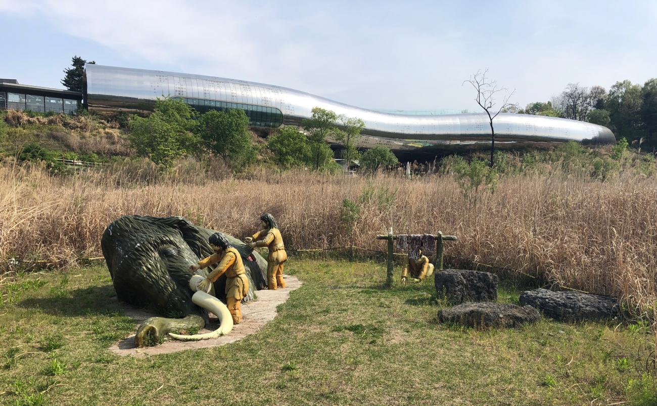 In The Netherlands (and probably the rest of Europe) this would focus solely on the Stone Age: prehistoric people doing Stone Age activities with the public. However, in Korea they do things differently...