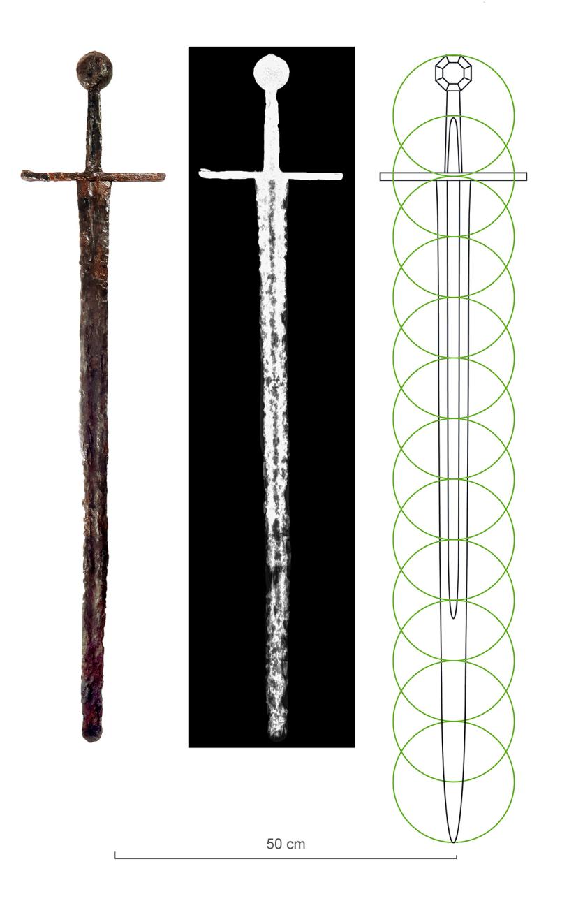 Based on Peter Johnsson's theories regarding the geometric design of swords (Johnsson, 2015), the original length and shape of the weapon could be reconstructed (1160 mm).