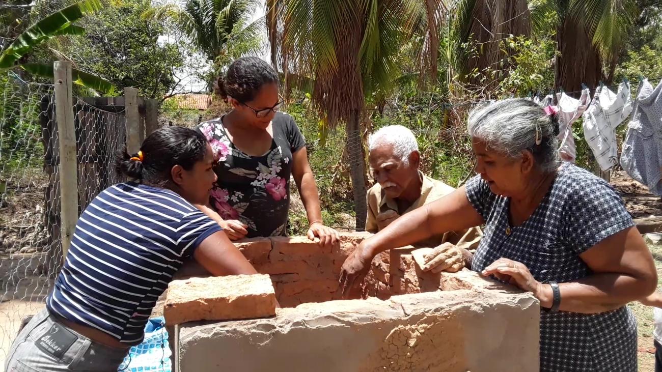The practical pottery activity took place in the backyard of Ivani's house, in the community of Fabião I. The potters took a seat under a mango tree and produced their ceramics, each with its own technique, one observing the other, asking questions and identifying differences between the ceramic techniques.